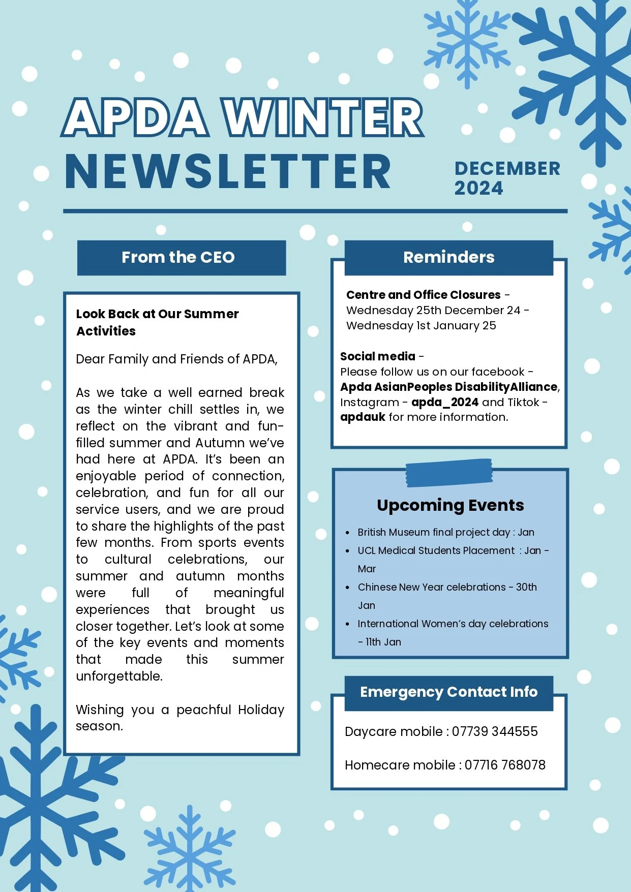 Summer Newsletter 2025 Click here Winter Newsletter 2025 Click here Spring Newsletter 2025 Click here Winter Newsletter 2024 Click here Spring Newsletter 2024 Click here Winter Newsletter 2023 Click here Bumper Winter 2022 and Spring 23 Newsletter Click here